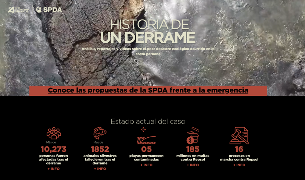 The SPDA is competing in the “Impact” category with Story of a Spill, a comprehensive campaign that addresses from several fronts the environmental disaster caused by the spill of some 12 thousand barrels of oil in the Peruvian sea. The event occurred in January 2022, and since then the SPDA has worked in an interdisciplinary manner to expose the effects, raise public awareness, demand reparations for those affected by the Repsol company, and influence public policies.